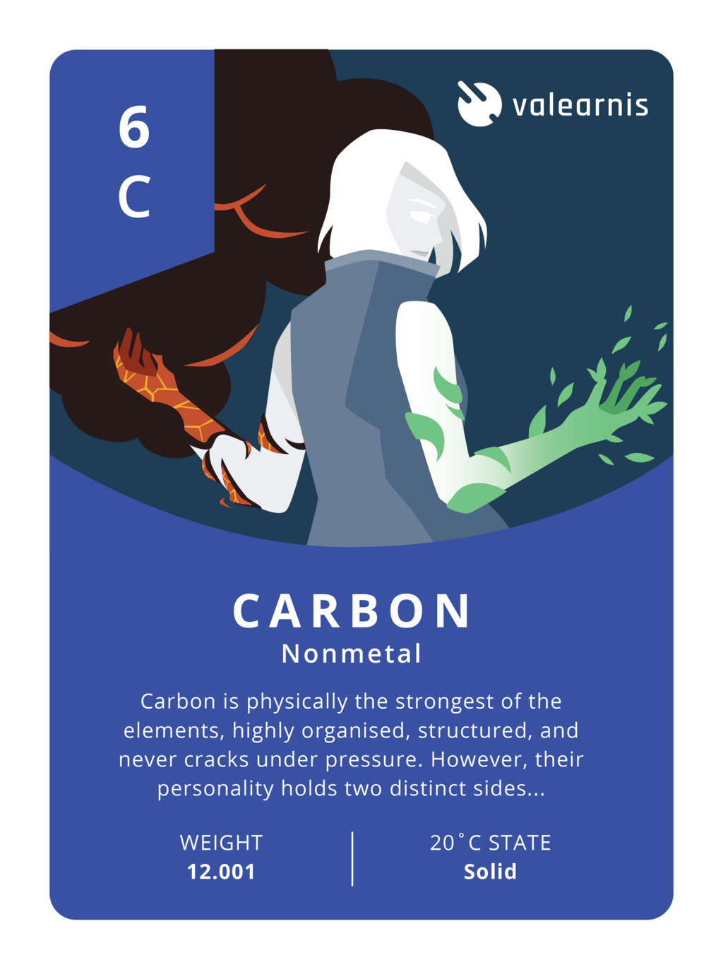 Valearnis is an educational ecosystem trying to revolutionise the world of learning. The Valearnis Elements series is our first foray into the Web3 space, blending together art, education, digital goods, and interesting stories. Our first collection covers the first 8 elements of the periodic table, bringing together their unique attributes and weaving in meaningful backstories and inspiring art. We're trying to create a trading card series that is both interesting and informative. Each element of the periodic table is comprised of 4 unique versions, the original, a silver, gold, and diamond version. Every item within this collection is a unique, one-of-one card. Purchasing these NFTs helps validate the idea of education in Web3 and supports our vision for the future of learning.